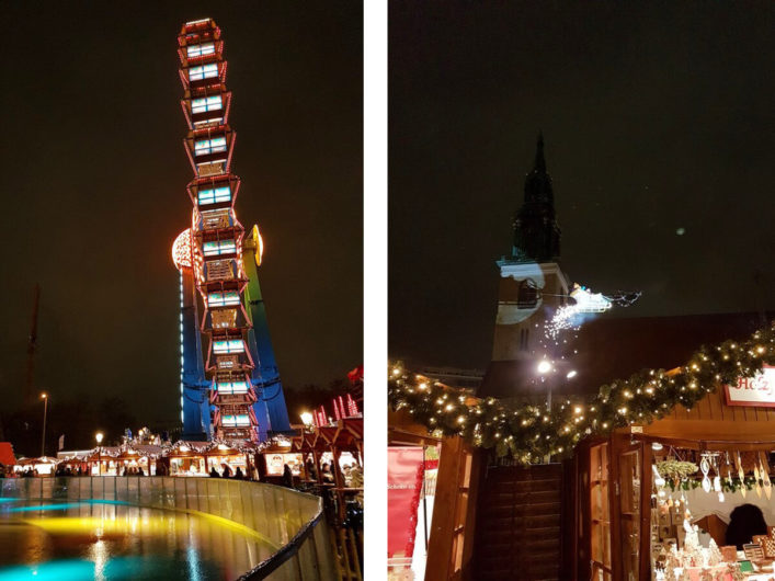 Auf dem Weihnachtsmarkt am Roten Rathaus gibt es auch ein Riesenrad und eine Eisbahn. Und obwohl ich eigentlich keine kirmesartigen Weihnachtsmärkte mag, passt beides sich hier von Optik und Gestaltung gut ein, sodass es mich nicht stört.